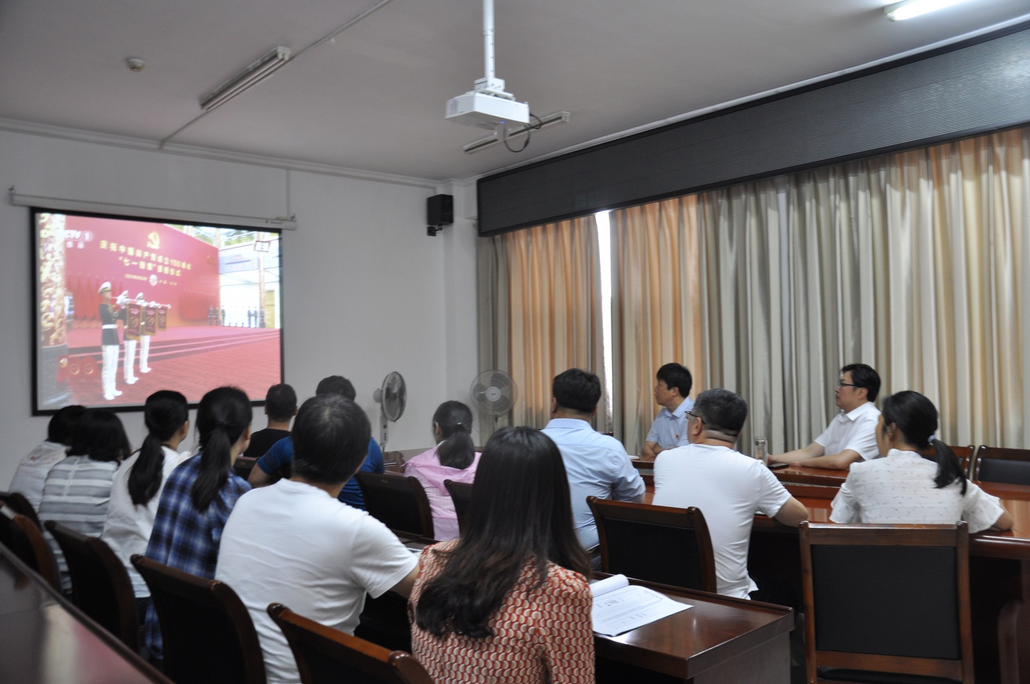 在收看過程中,整個會場秩序井然,與會人員聚精會神。