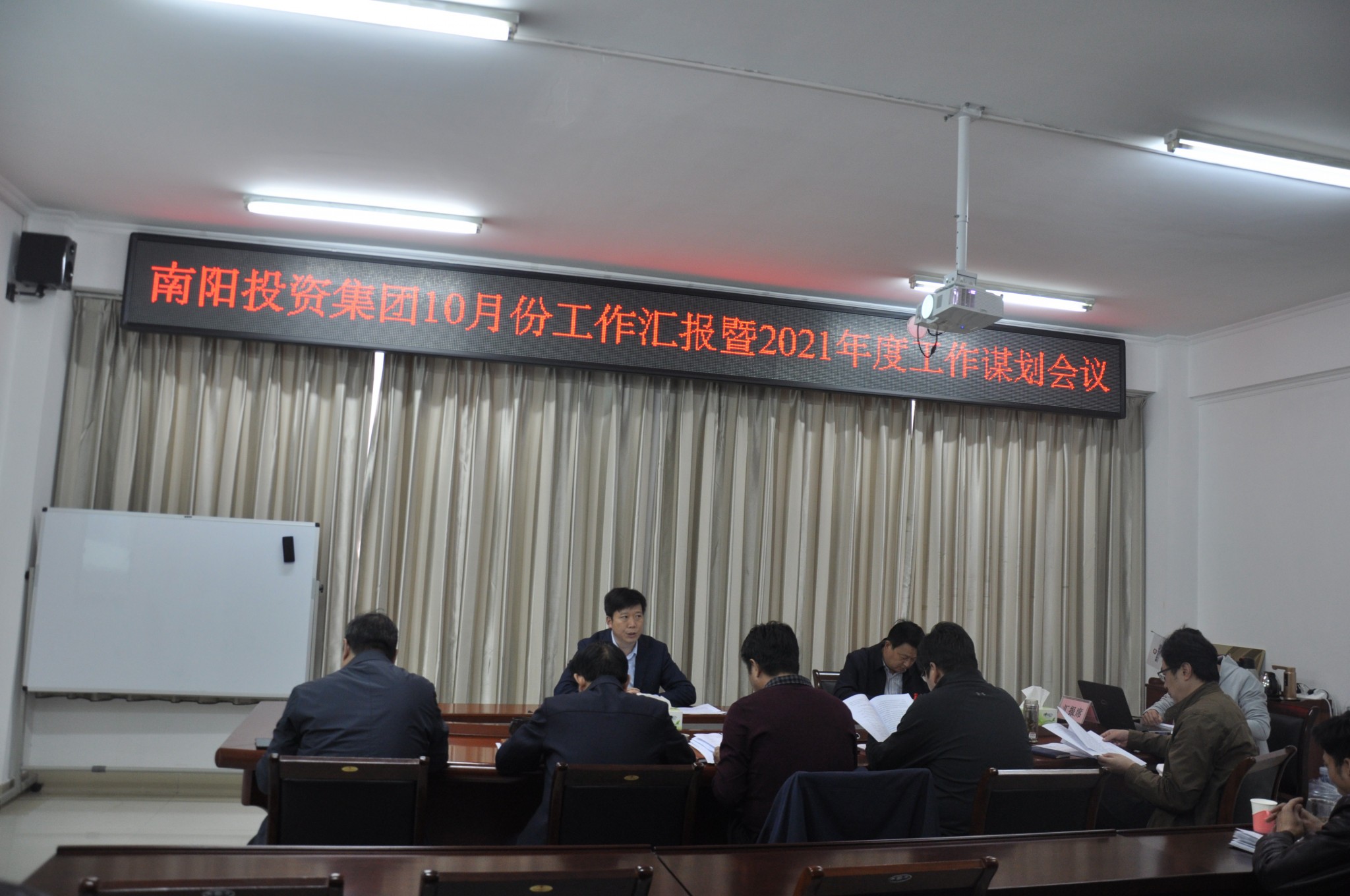 2020年10月27日,南陽投資集團召開了10月份工作匯報和2021年度工作謀劃會議。聽取各班子成員和部室(公司)10月份工作和2021年度工作謀劃情況匯報,確定11月份重點工作,做好2021年度工作謀劃,進一步明確目標(biāo)指標(biāo)和重點舉措,完善體制機制和制度建設(shè),落實市場化轉(zhuǎn)型各項要求,謀劃確定重大項目,提升集團實力形象。