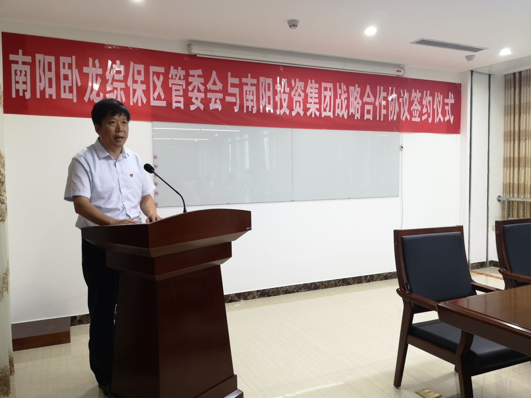 2020年7月17日上午,南陽投資集團(tuán)與南陽臥龍綜保區(qū)簽訂戰(zhàn)略合作協(xié)議,掀開了雙方合作共贏的新篇章。南陽投資集團(tuán)黨委書記、董事長楊振中、南陽投資集團(tuán)黨委委員、總經(jīng)理高增偉和臥龍綜保區(qū)管委會主任李文鵬等領(lǐng)導(dǎo)參加簽約活動。