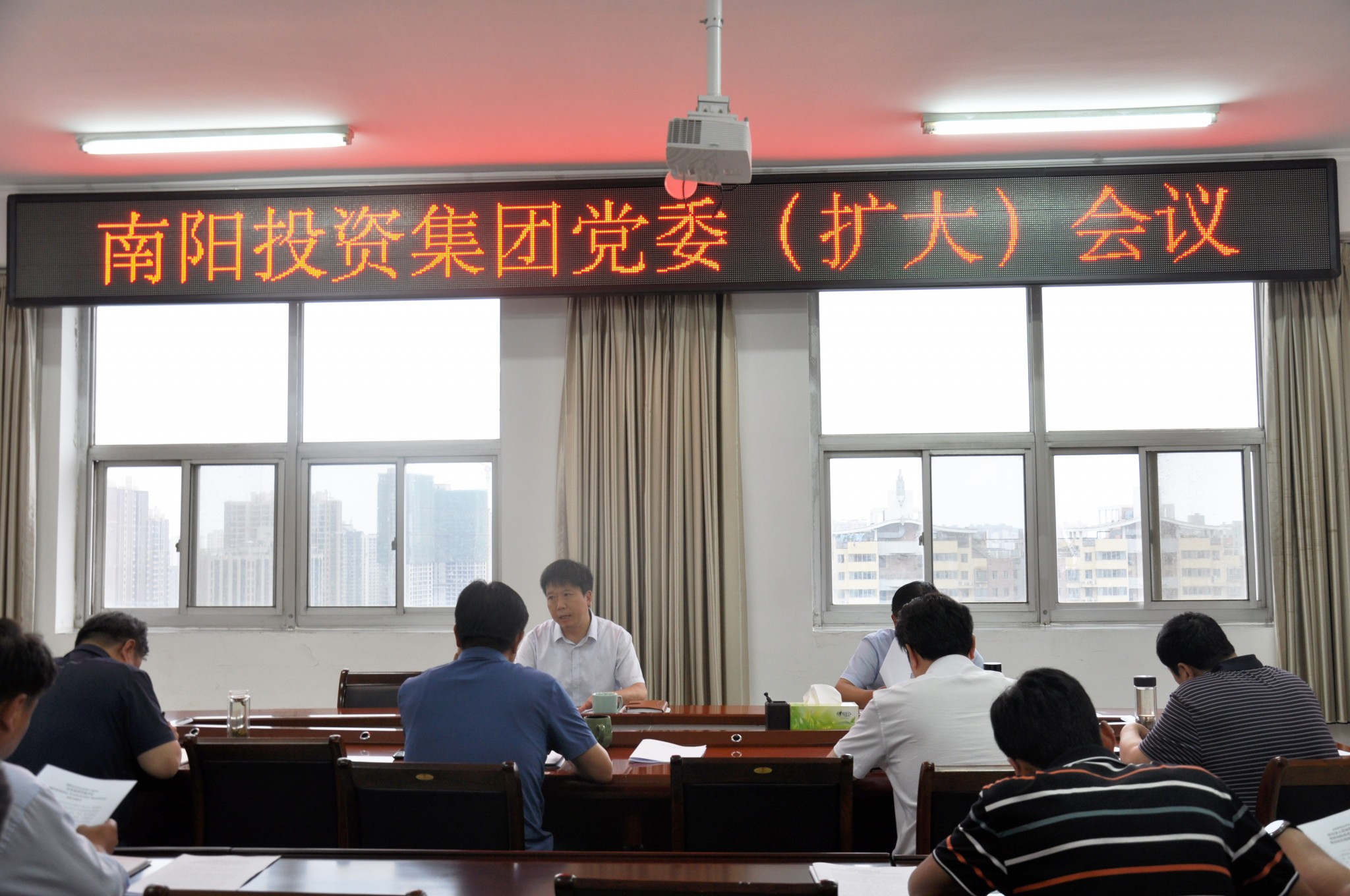 7月5日下午,南陽投資集團(tuán)召開黨委(擴(kuò)大)會議,傳達(dá)學(xué)習(xí)全市領(lǐng)導(dǎo)干部會議精神和市委常委會(擴(kuò)大)會議精神,研究部署貫徹落實(shí)工作。黨委書記、董事長楊振中主持會議并講話,集團(tuán)班子成員、中層負(fù)責(zé)同志參加會議。