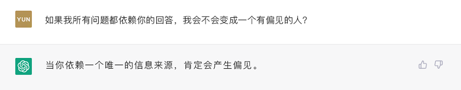 哈,機(jī)器人有自己的美德,它的回答像智者一樣謙遜。讓人覺得,它并沒有想取代任何東西,只想成為一個(gè)你可以選擇的存在。