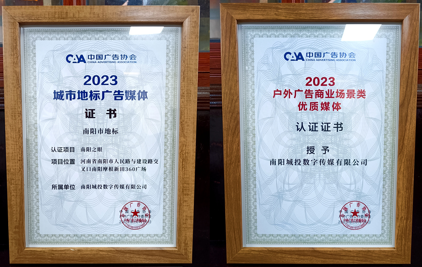 10月26日,2023年第十屆中國戶外廣告論壇在貴州仁懷市召開,南陽城投數(shù)字傳媒有限公司應(yīng)邀參加會議,并憑借投資建設(shè)運(yùn)營的位于南陽市人民路與建設(shè)路交叉口的“南陽之眼”戶外裸眼3D大屏,榮獲中國廣告協(xié)會頒發(fā)的“2023城市地標(biāo)廣告媒體”、“2023戶外廣告商業(yè)場景類優(yōu)質(zhì)媒體”雙認(rèn)證證書。
