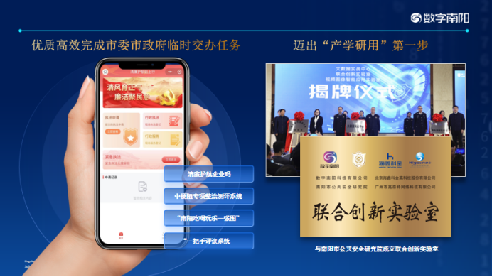 公司與南陽市公共安全研究院成立聯(lián)合創(chuàng)新實(shí)驗(yàn)室,研發(fā)出“網(wǎng)約房治安管理平臺(tái)”等5個(gè)應(yīng)用系統(tǒng),先后在公安部和省廳獲獎(jiǎng),并在南陽市第二屆“智慧警務(wù)”論壇上成功推介。