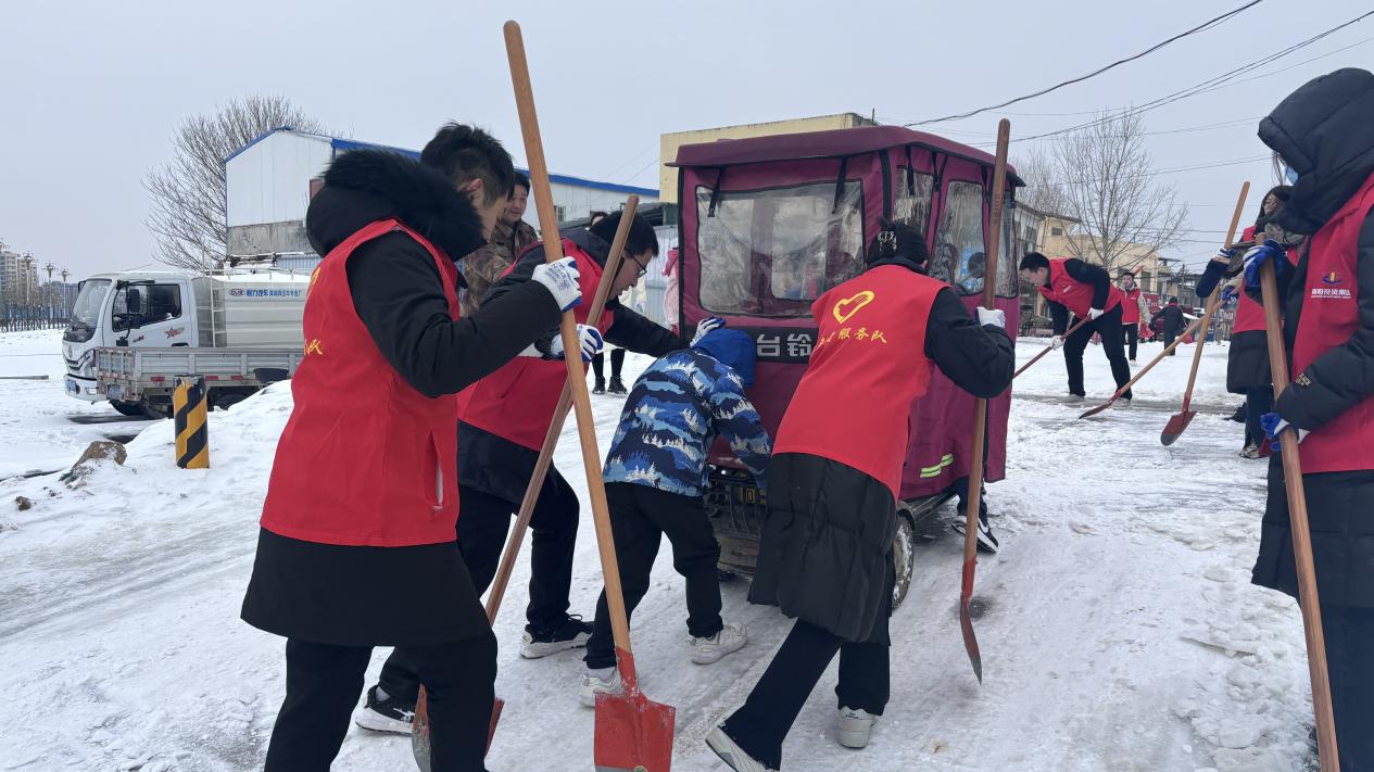 各支部、黨建聯(lián)系點(diǎn)的黨員、積極分子們?cè)诠鞠嚓P(guān)區(qū)域和附近街道進(jìn)行積雪清理。清雪現(xiàn)場(chǎng),他們主動(dòng)清理積雪、積冰、積水,天氣雖然寒冷,但黨員們的心里卻暖意融融。經(jīng)過(guò)大家相互配合,你鏟我掃,道路的積雪被基本清掃干凈,為雪后群眾出行開(kāi)辟了一條“安全通道”。