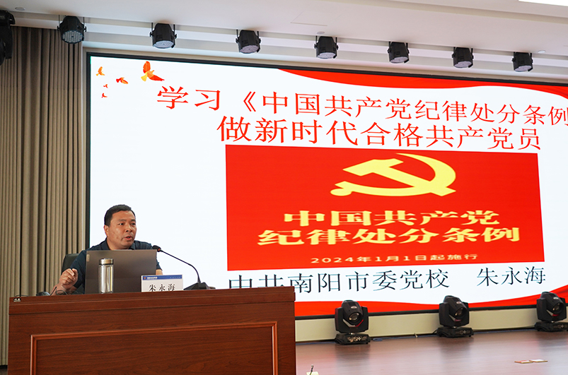 為深入學(xué)習(xí)貫徹習(xí)近平總書(shū)記關(guān)于黨紀(jì)學(xué)習(xí)教育的重要講話(huà)和重要指示批示精神,加強(qiáng)黨的紀(jì)律建設(shè),扎實(shí)推動(dòng)黨紀(jì)學(xué)習(xí)教育走深走實(shí)。5月28日,南陽(yáng)投資集團(tuán)舉辦黨紀(jì)學(xué)習(xí)教育專(zhuān)題培訓(xùn)會(huì),邀請(qǐng)市委黨校黨的建設(shè)教研室副主任朱永海作專(zhuān)題輔導(dǎo)。集團(tuán)黨委書(shū)記、董事長(zhǎng)余永海,市紀(jì)委監(jiān)委駐市管?chē)?guó)有企業(yè)第一紀(jì)檢監(jiān)察組組長(zhǎng)馬馳出席會(huì)議,集團(tuán)黨委副書(shū)記、監(jiān)事會(huì)主席韓玉奇主持會(huì)議。