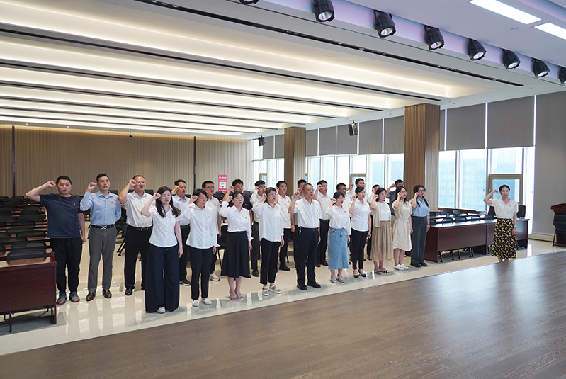 最后,機(jī)關(guān)黨支部全體黨員在支部書記的帶領(lǐng)下舉起右手,重溫入黨誓詞,再一次用錚錚誓言詮釋入黨初心。