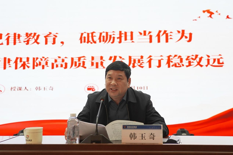在隨后的書記講黨課環(huán)節(jié),韓玉奇以《深化紀律教育 砥礪擔(dān)當(dāng)作為 以嚴明紀律保障高質(zhì)量發(fā)展行穩(wěn)致遠》為題,深入闡釋了加強紀律建設(shè)的重要意義,重點圍繞“六大紀律”,以實際案例為依托,剖析了反面典型案例的問題、原因、危害和啟示教訓(xùn),并結(jié)合集團經(jīng)營發(fā)展實際,要求在項目建設(shè)、投融資活動、財務(wù)審計、人才隊伍培育等關(guān)鍵環(huán)節(jié)做實紀律保障,把黨紀學(xué)習(xí)教育同中心工作和集團發(fā)展聯(lián)系在一起,為營造風(fēng)清氣正的政治生態(tài)和良好的工作環(huán)境而努力奮斗。