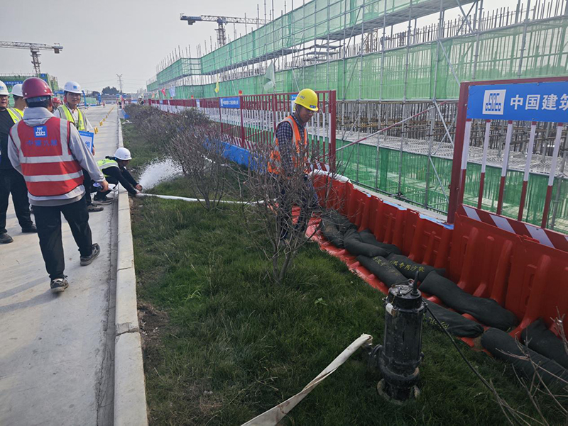 緊盯重點部位環(huán)節(jié),加大巡查排險力度,開展建筑工地汛期安全專項大檢查。防汛一級應(yīng)急響應(yīng)期間,著重檢查項目電箱安全及二次提升泵站、鼓風(fēng)機房、綜合樓、鋼筋加工廠、水解酸化池、基坑內(nèi)部情況。完善工作協(xié)調(diào)機制,動態(tài)掌握應(yīng)急物資儲備情況,做到底數(shù)清情況明,確保關(guān)鍵時刻能夠保障需求。用足用好沙袋、水泵等應(yīng)急物資,做到能及時排水,嚴防澇水灌入。