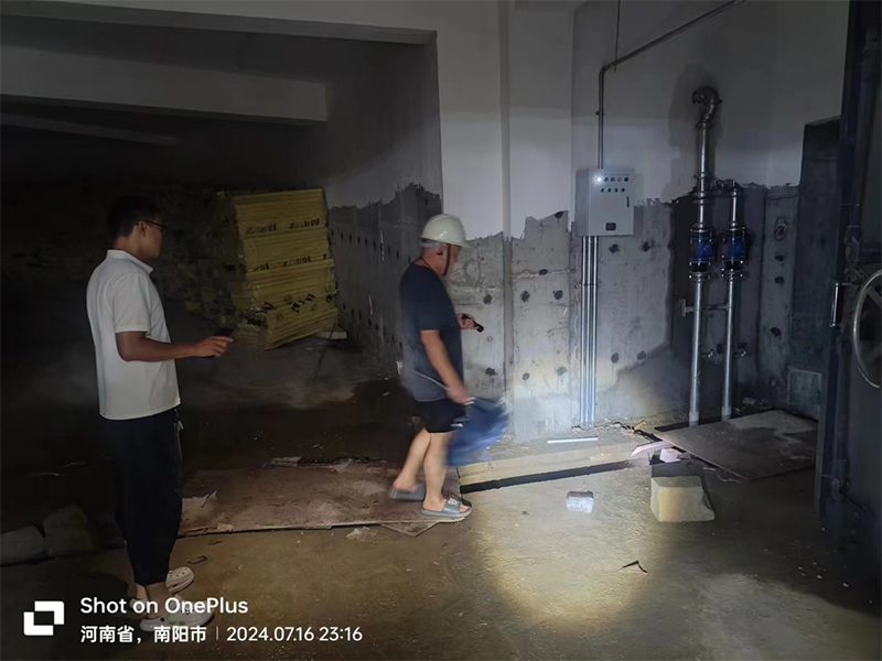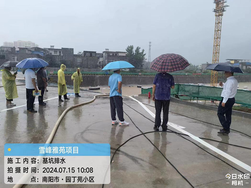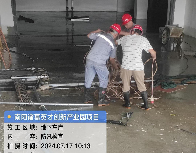 加強隱患排查,落實防范措施,把應(yīng)對措施再細化,把應(yīng)急搶險、防災(zāi)救災(zāi)各項措施做細做實做到位。針對項目地下室少量進水,安排人員及水泵加快排水力度,確保項目安全。