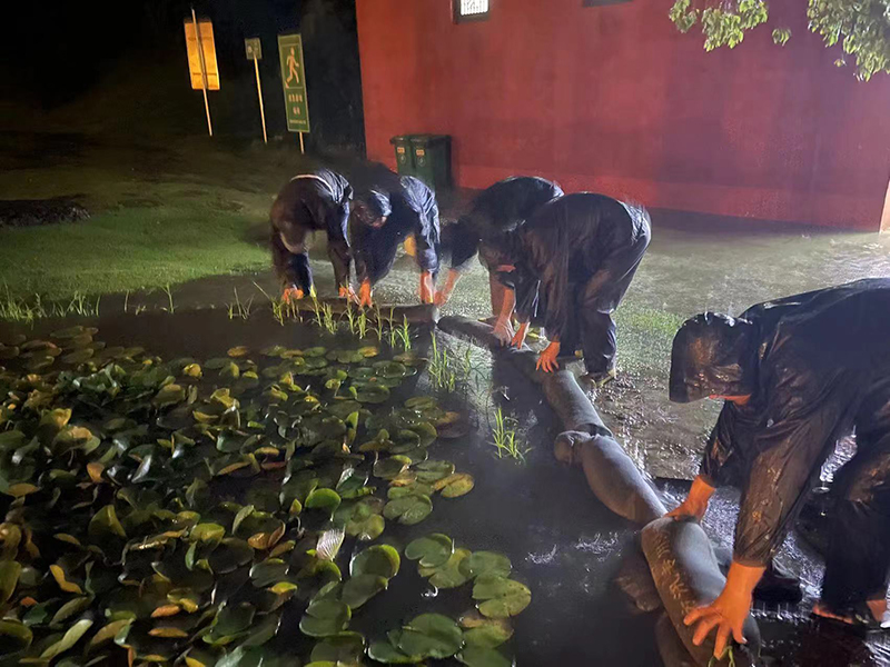 及時關(guān)注天氣變化和預(yù)警信息,嚴格遵循防汛一級應(yīng)急響應(yīng)要求,時刻保持警覺,強化值班值守,著重檢查地下室、室外道路、室內(nèi)積水及配電箱安全。確保沙袋、水泵、發(fā)電機等防汛物資儲備充足,構(gòu)筑好防汛防線。