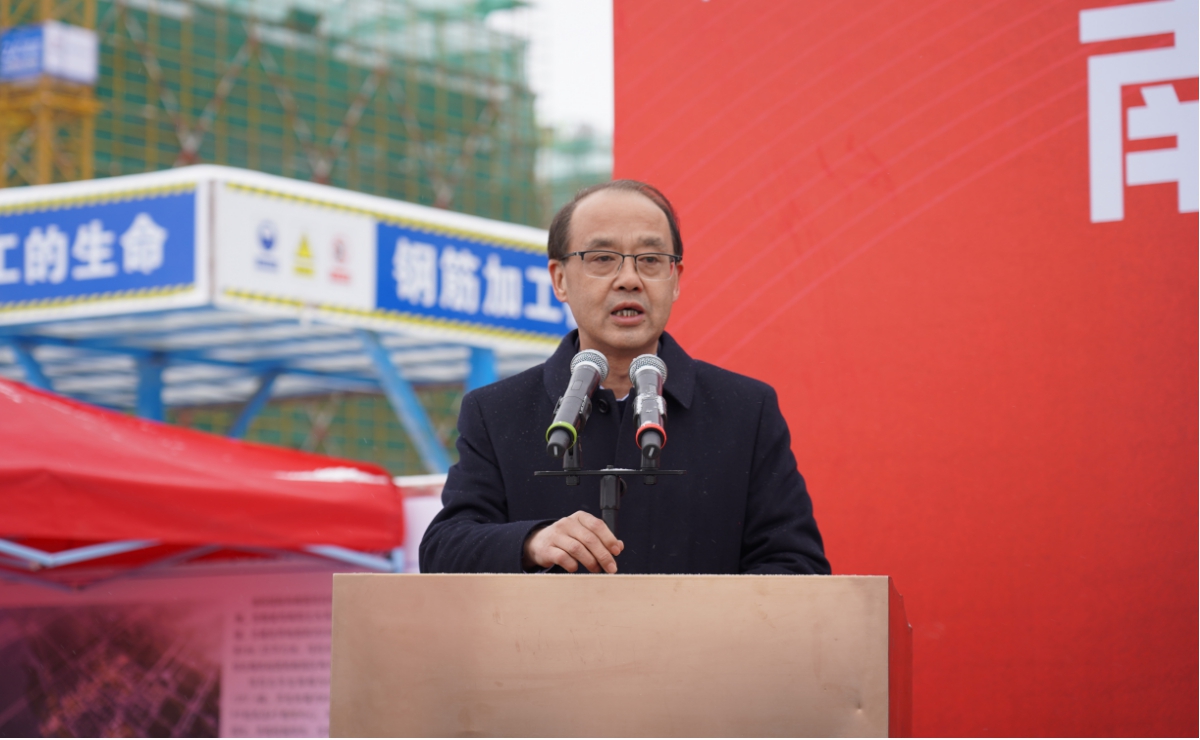 劉九利在致辭中表示,南陽智慧物聯(lián)職業(yè)學(xué)院項目主體結(jié)構(gòu)的順利封頂離不開市委、市政府領(lǐng)導(dǎo)的關(guān)心重視,離不開市直各單位和城鄉(xiāng)一體化示范區(qū)管委會的支持配合,更離不開各參建單位“春節(jié)不斷檔、節(jié)目不停工”的日夜奮戰(zhàn)。他代表南陽投資集團對所有參與項目建設(shè)的全體同志表示深深地感謝和慰問。