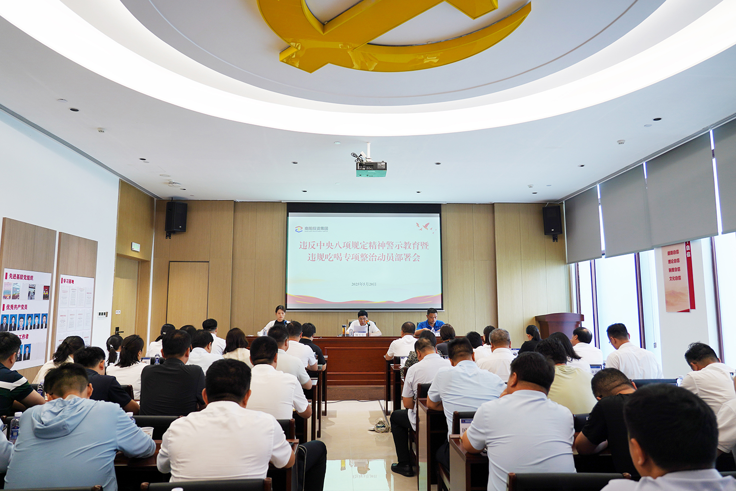 5月20日,南陽投資集團召開違反中央八項規(guī)定精神警示教育暨違規(guī)吃喝專項整治工作部署會,深刻剖析典型案例,教育引導(dǎo)黨員干部堅決抵制違規(guī)吃喝等歪風(fēng)邪氣,進(jìn)一步嚴(yán)明紀(jì)律規(guī)矩,營造風(fēng)清氣正的政治生態(tài)。集團黨委副書記韓玉奇主持會議并作部署講話,市紀(jì)委監(jiān)委駐市管國有企業(yè)第一紀(jì)檢監(jiān)察組副組長于智博到會指導(dǎo),集團各黨支部書記、各部室及域內(nèi)子公司主要負(fù)責(zé)人參加會議。