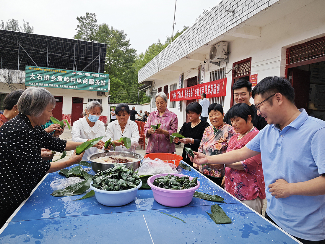 粽香傳情揚(yáng)美德,文明鄉(xiāng)風(fēng)助振興。在端午佳節(jié)來(lái)臨之際,南陽(yáng)投資集團(tuán)駐淅川縣大石橋鄉(xiāng)袁嶺村、鄭家?guī)X村工作隊(duì)聯(lián)合村“三委”及集團(tuán)醫(yī)養(yǎng)大健康公司,于5月30日開(kāi)展“粽香傳情榜樣引路”主題活動(dòng),通過(guò)“鄉(xiāng)村光榮榜”表彰、愛(ài)心粽子、關(guān)懷傳遞、夏送清涼、愛(ài)心理發(fā)等活動(dòng),為當(dāng)?shù)厝罕娝腿嘏妥8?。淅川縣大石橋鄉(xiāng)副鄉(xiāng)長(zhǎng)明洋等鄉(xiāng)村領(lǐng)導(dǎo)參加活動(dòng)。